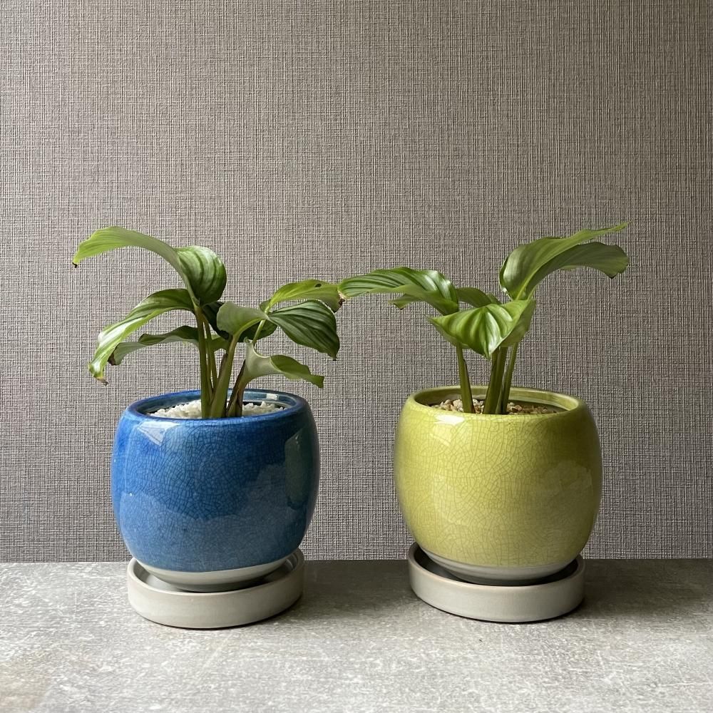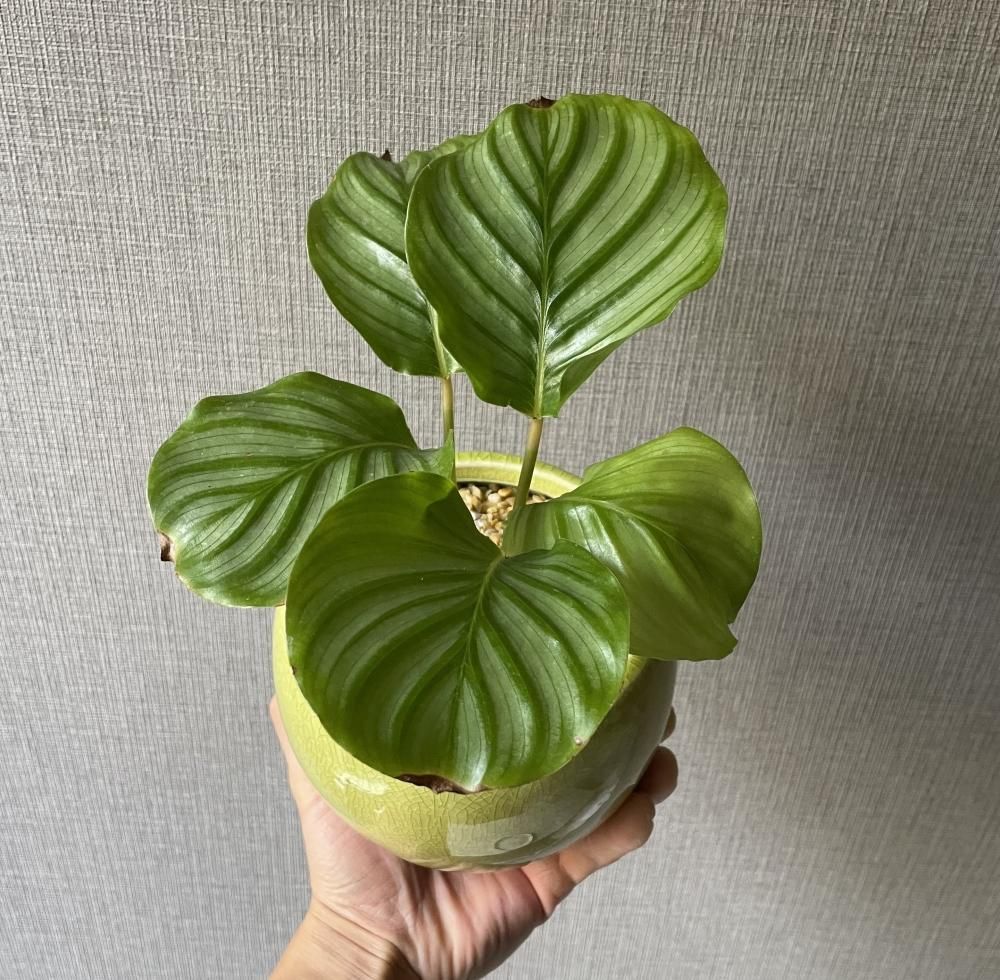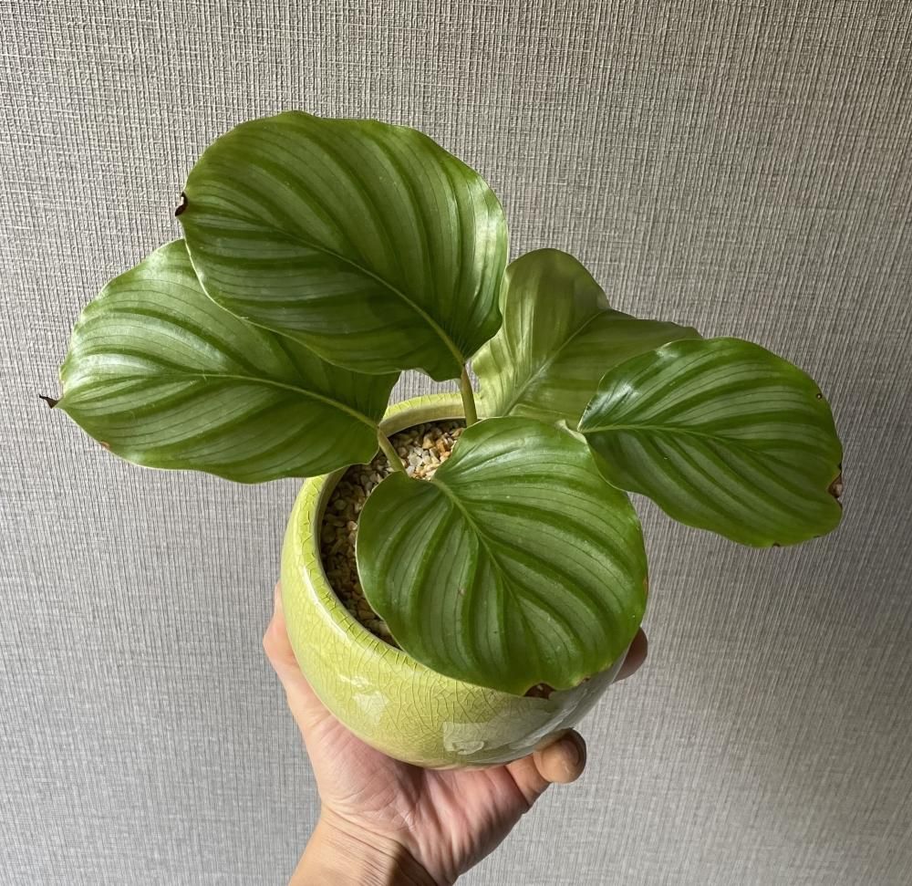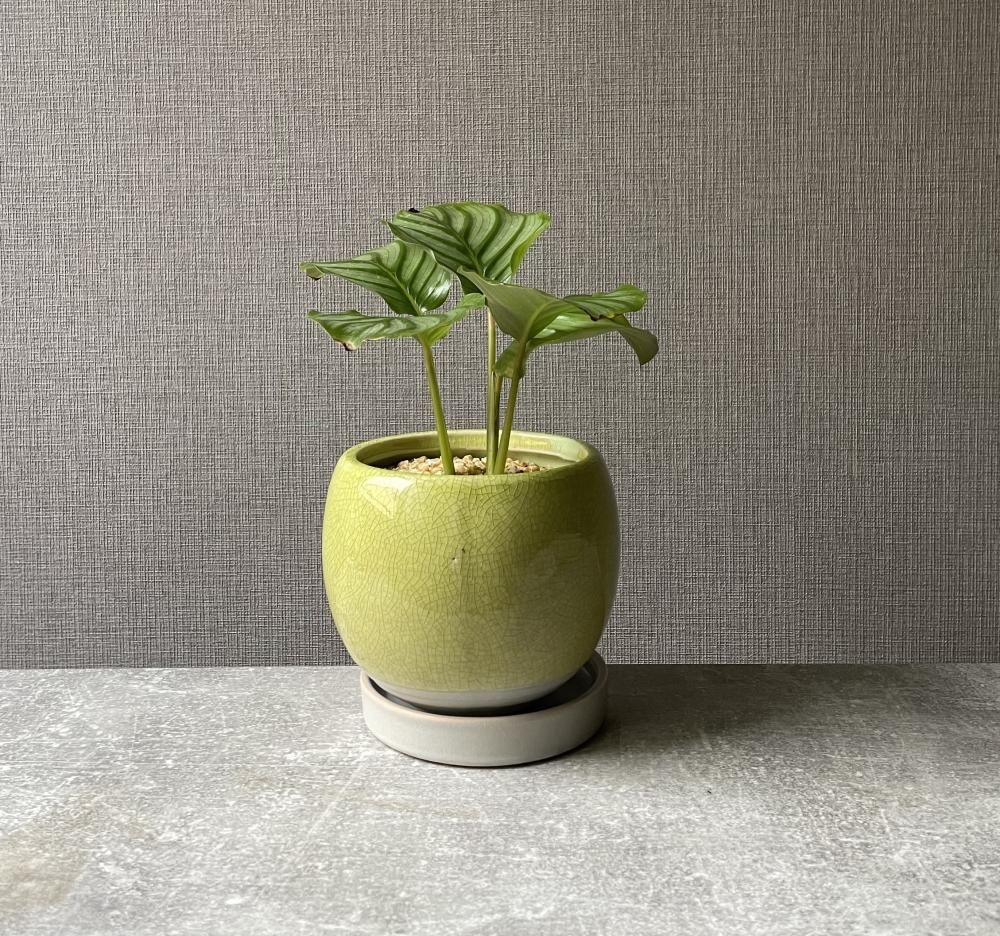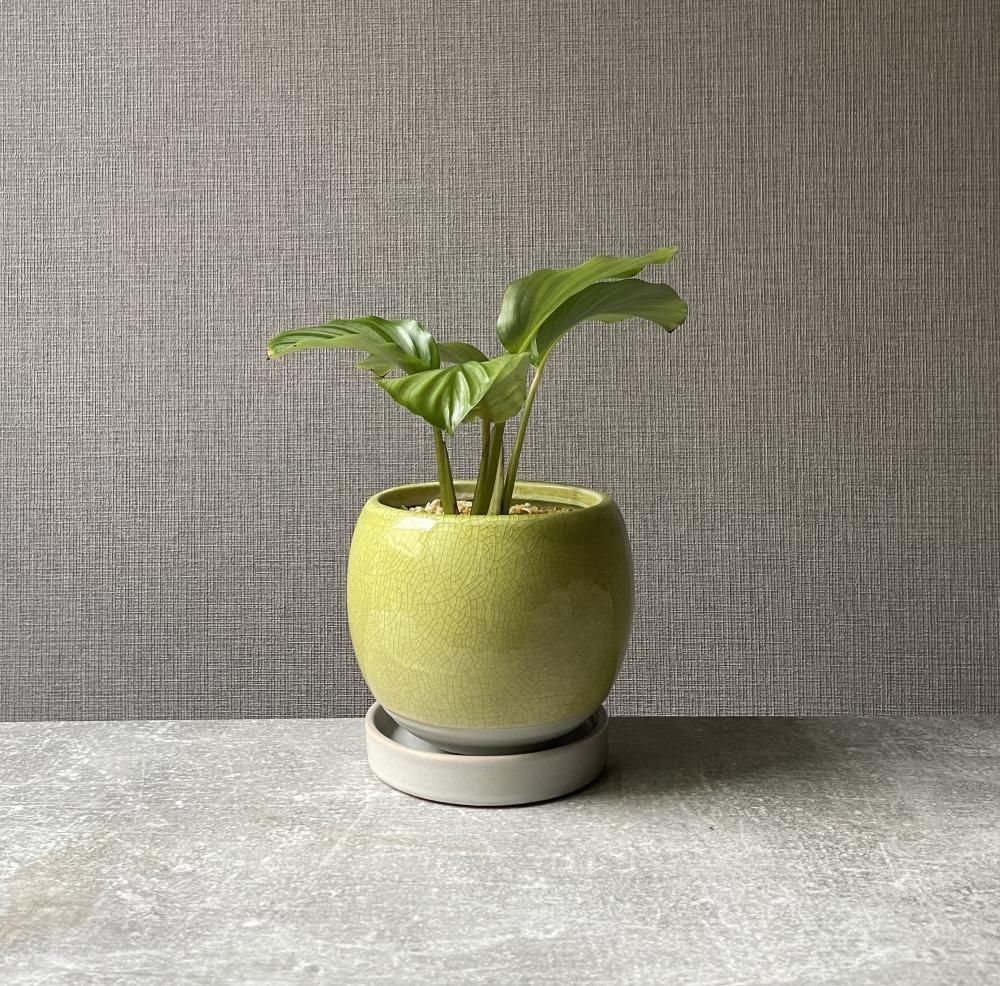 カラテア オルビフォリア 陶器鉢・受け皿付き(グリーン)