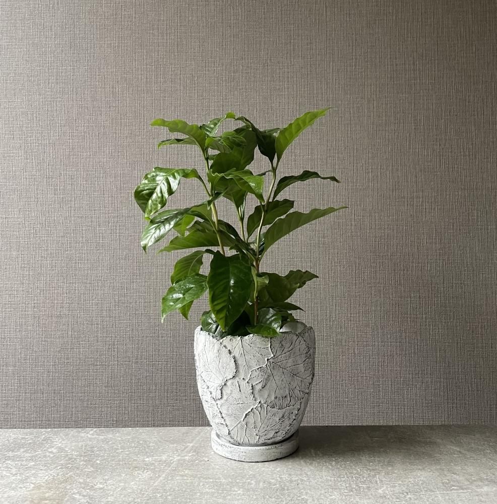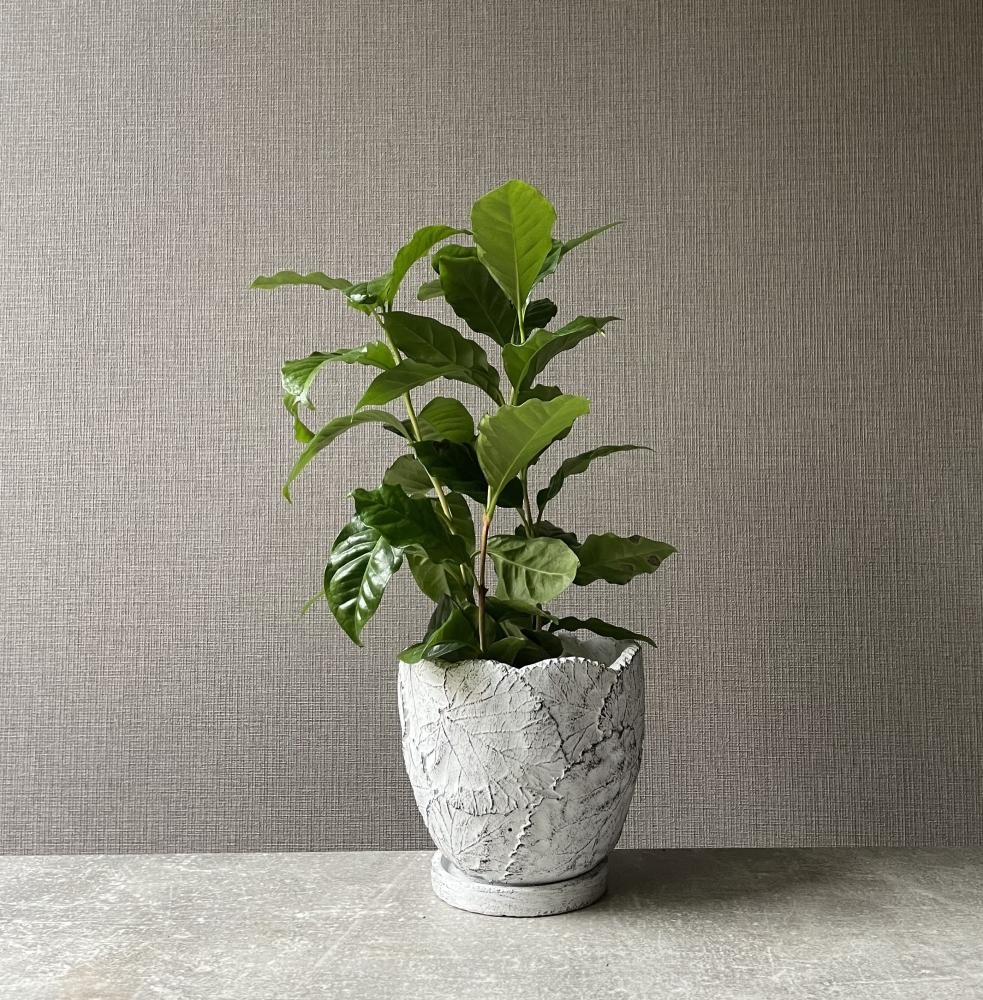 白の陶器鉢との相性が良く、さわやかでスタイリッシュな仕上がりです。