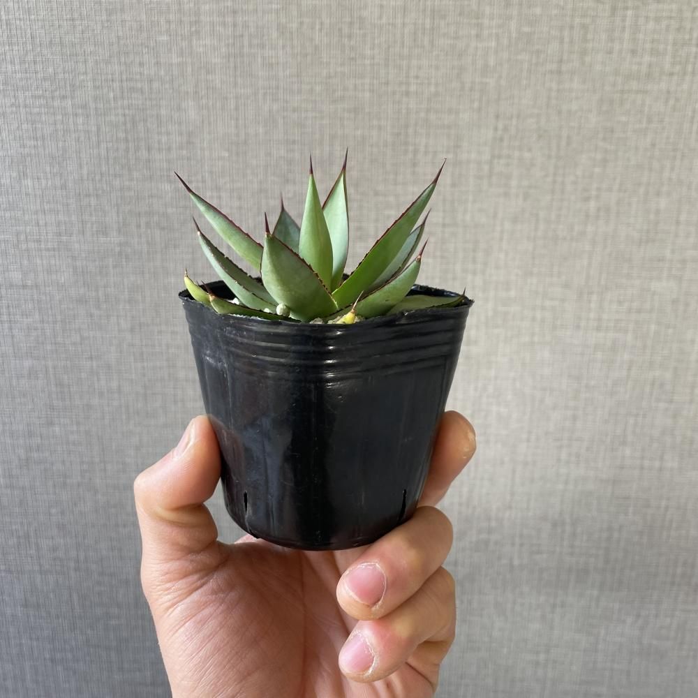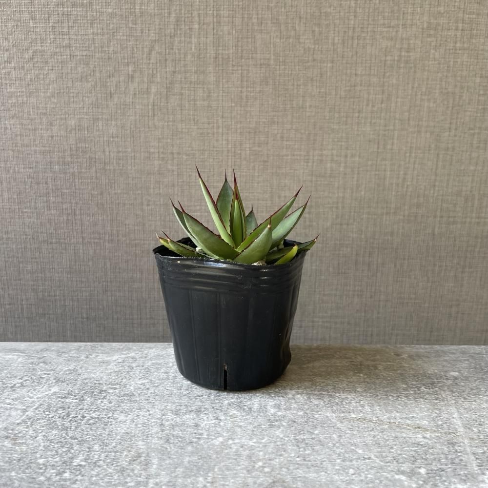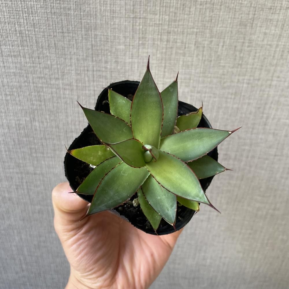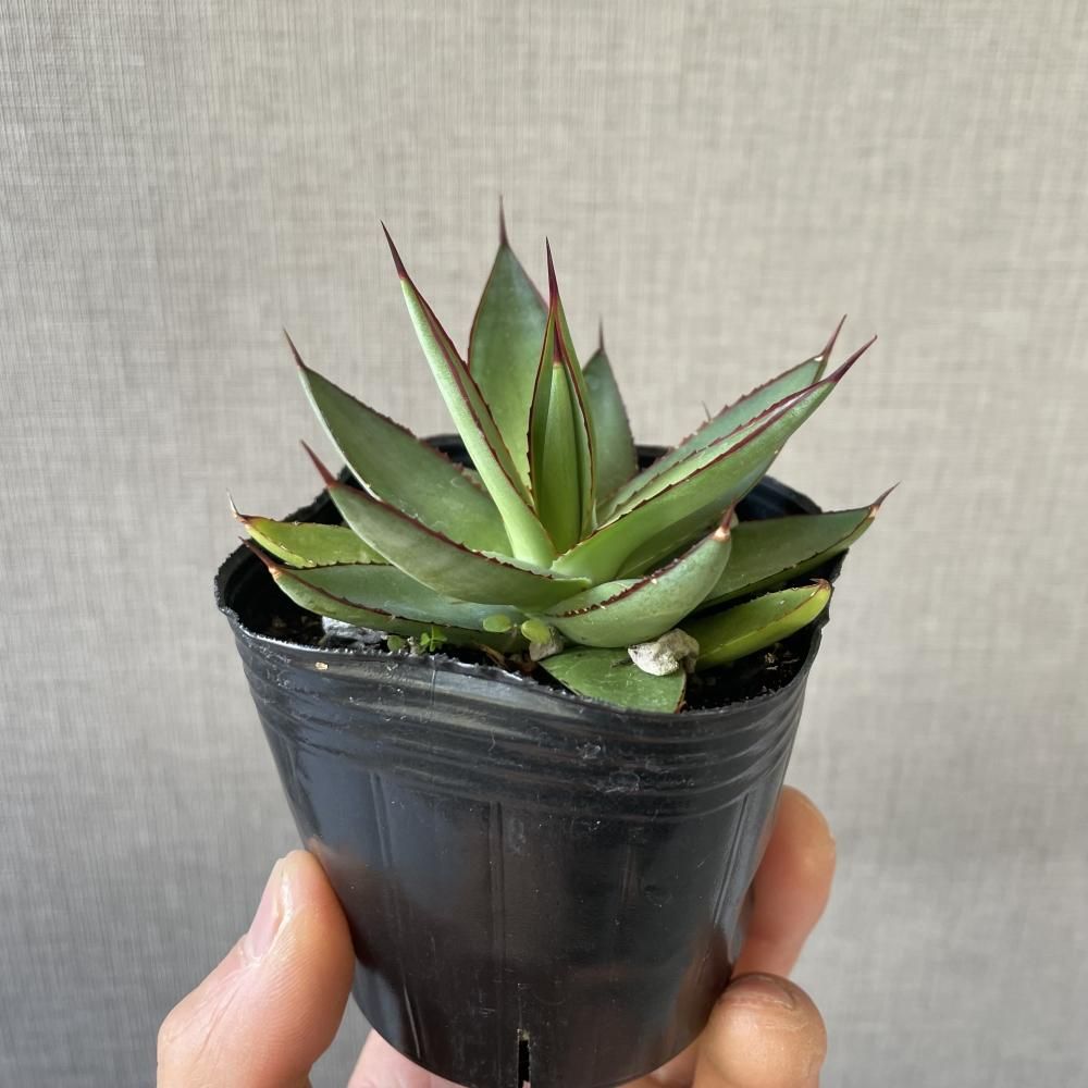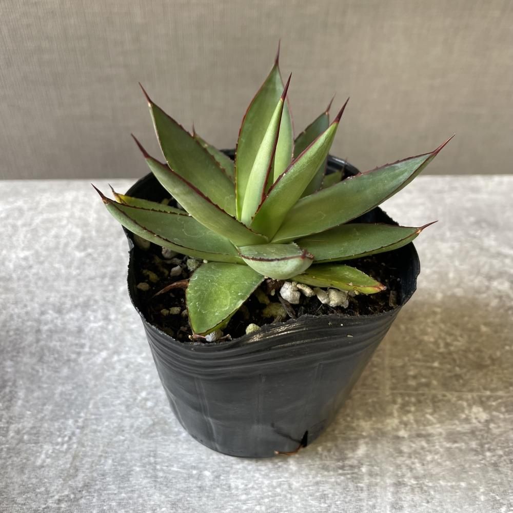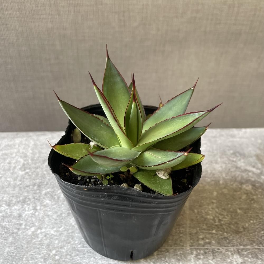 葉を縁取る真っ赤なトゲのラインが美しいアガベです。