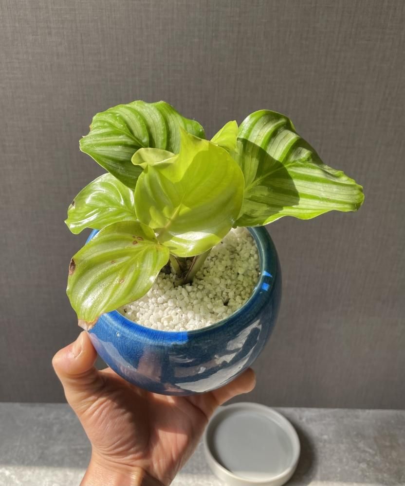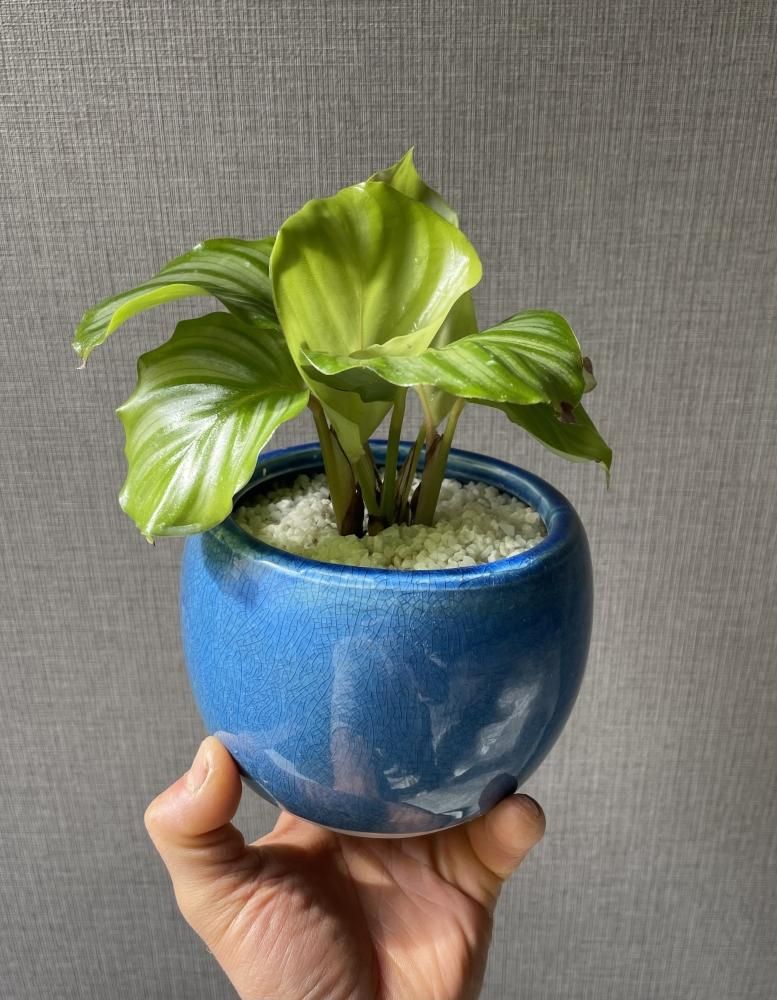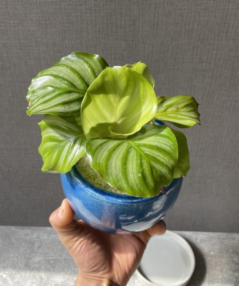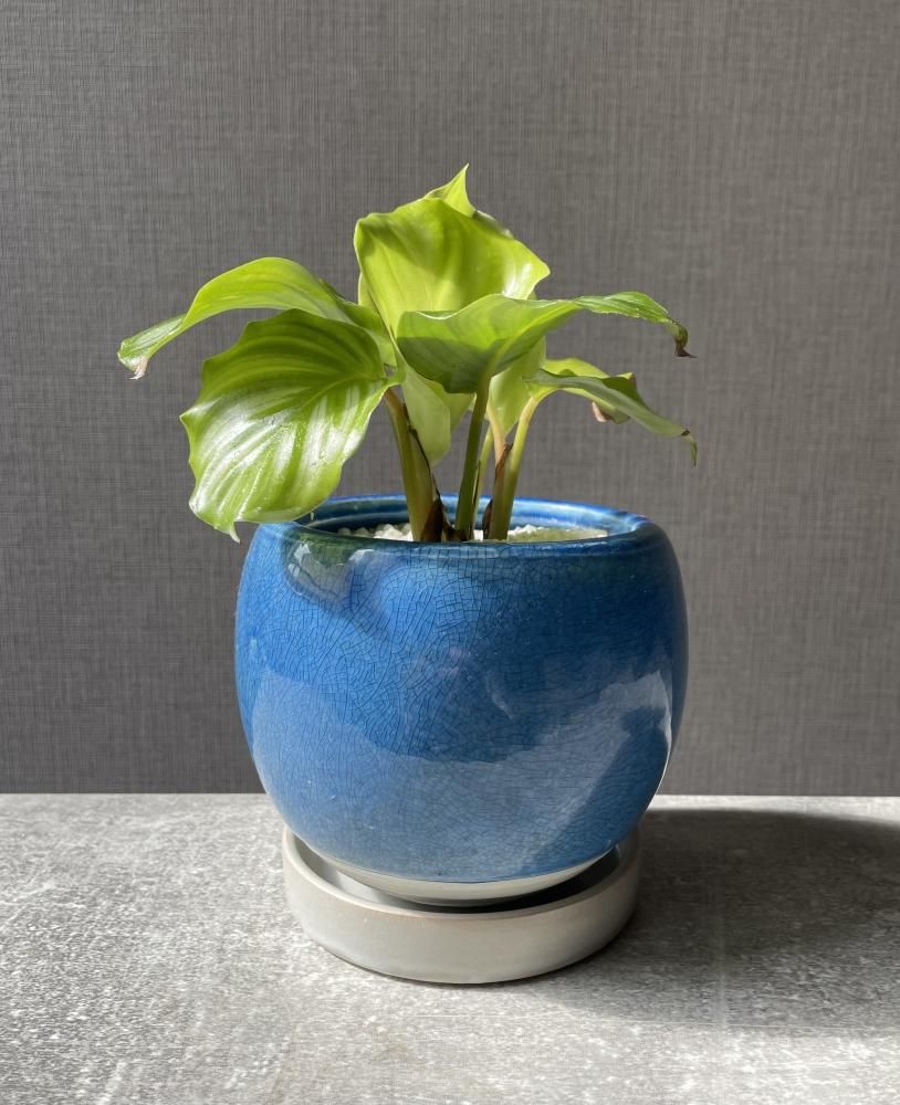 カラテア オルビフォリア 陶器鉢・受け皿付き(ブルー)