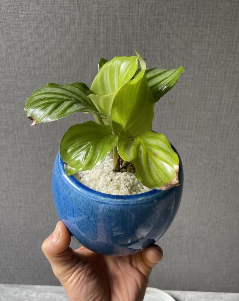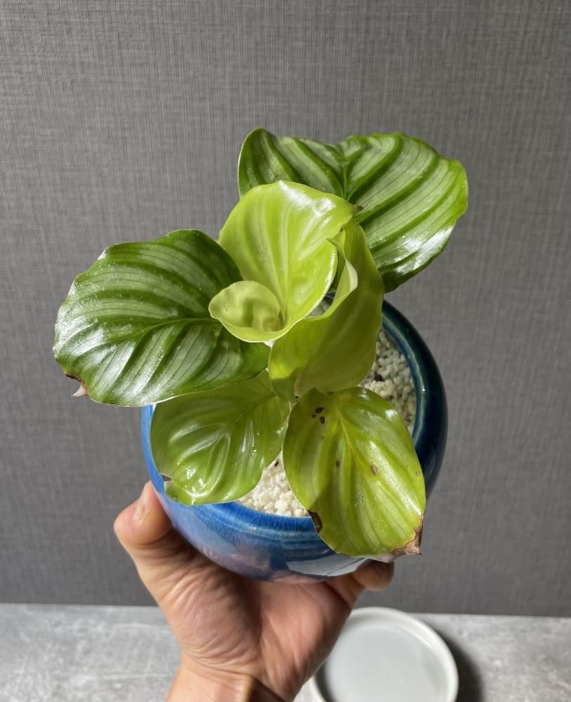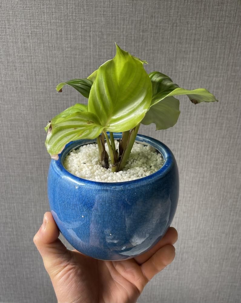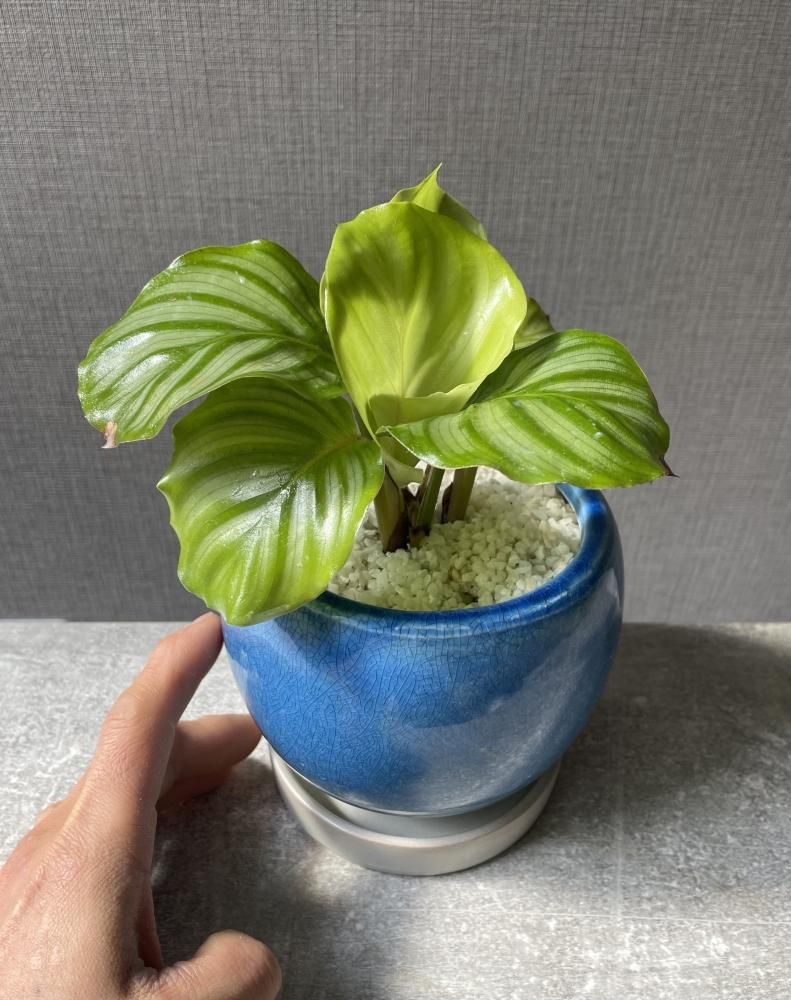 カラテア オルビフォリア 陶器鉢・受け皿付き(ブルー)