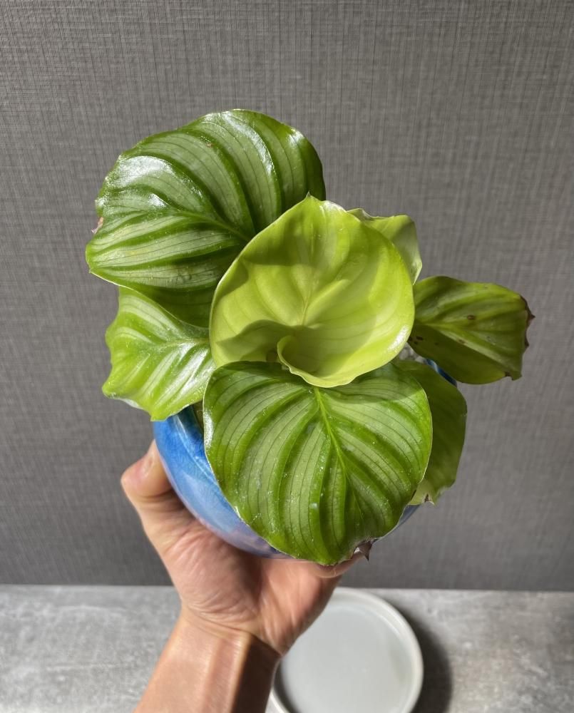 カラテア オルビフォリア 陶器鉢・受け皿付き(グリーン)